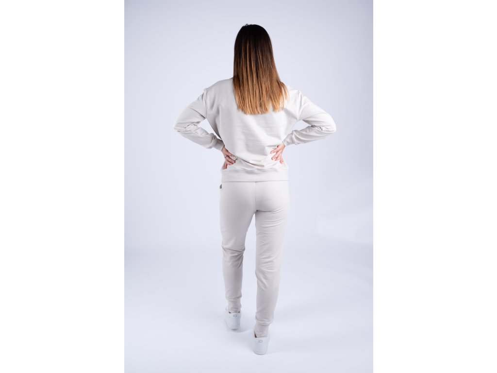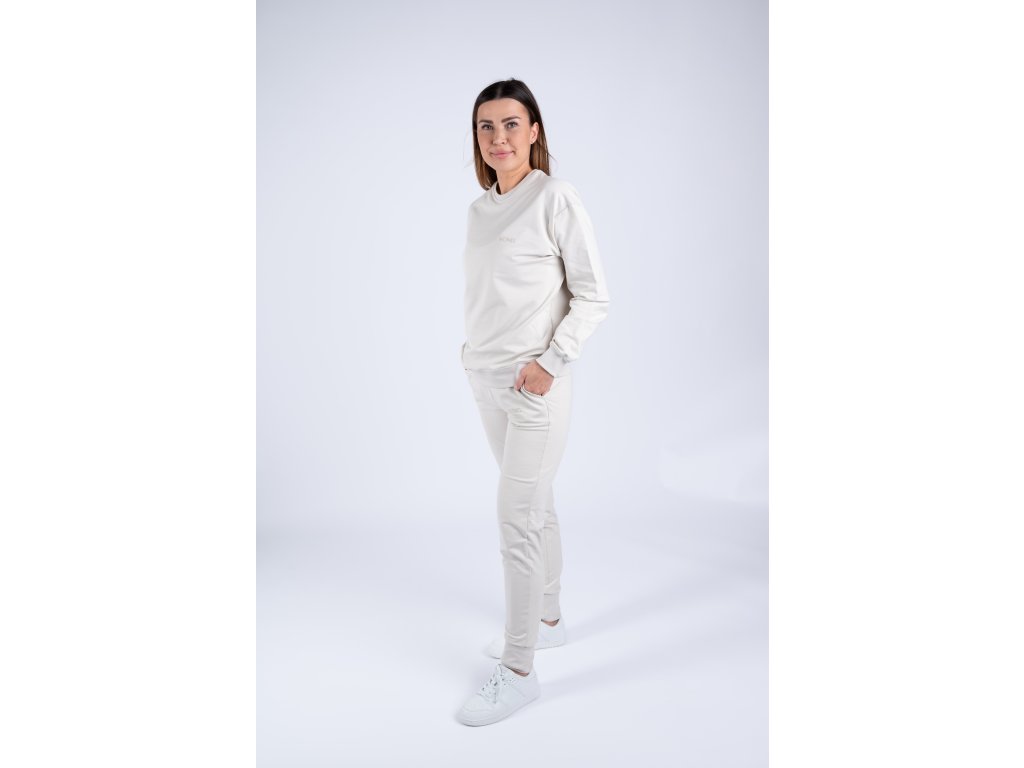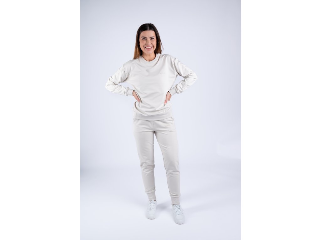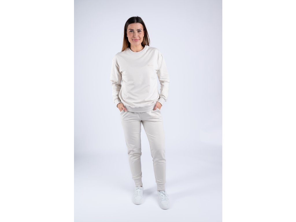 Světlá perlově béžová mikina je velmi elastická, takže se perfektně přizpůsobí vaší postavě a je tak pohodlná, že ji nebudete chtít už nikdy sundat.