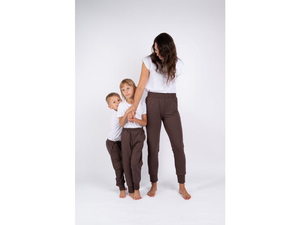 Tmavě hnědé tepláky jsou velmi elastické, takže se perfektně přizpůsobí vaší postavě a jsou tak pohodlné, že je nebudete chtít už nikdy sundat.