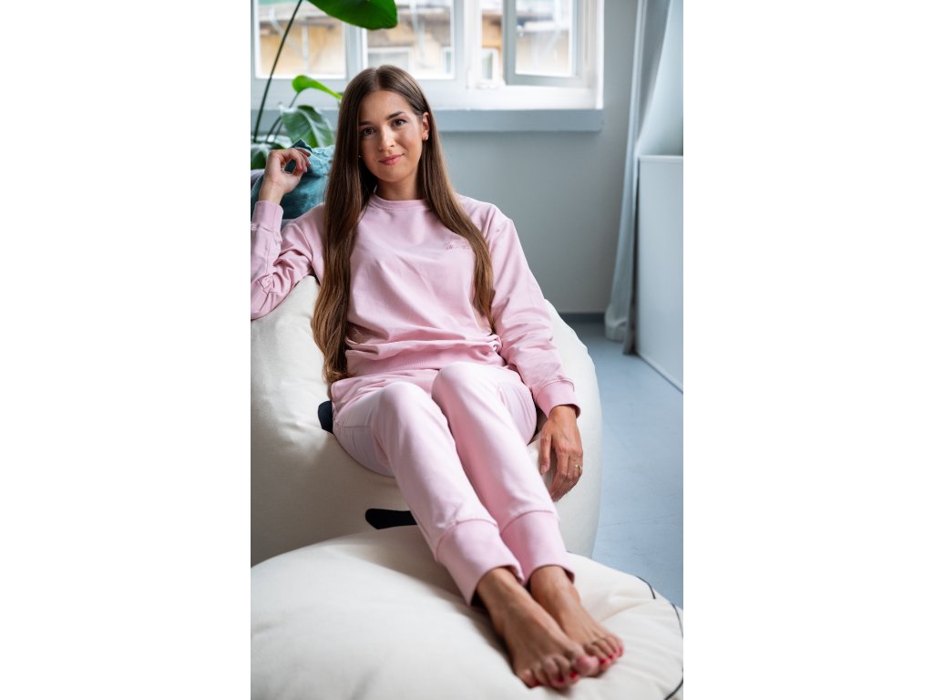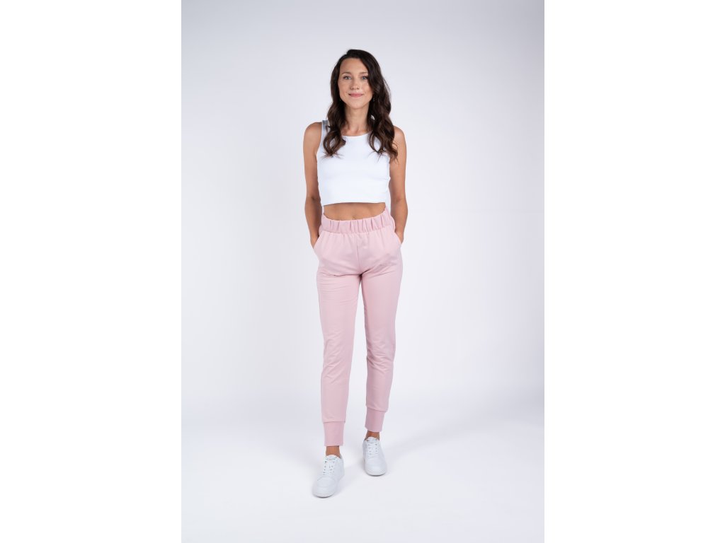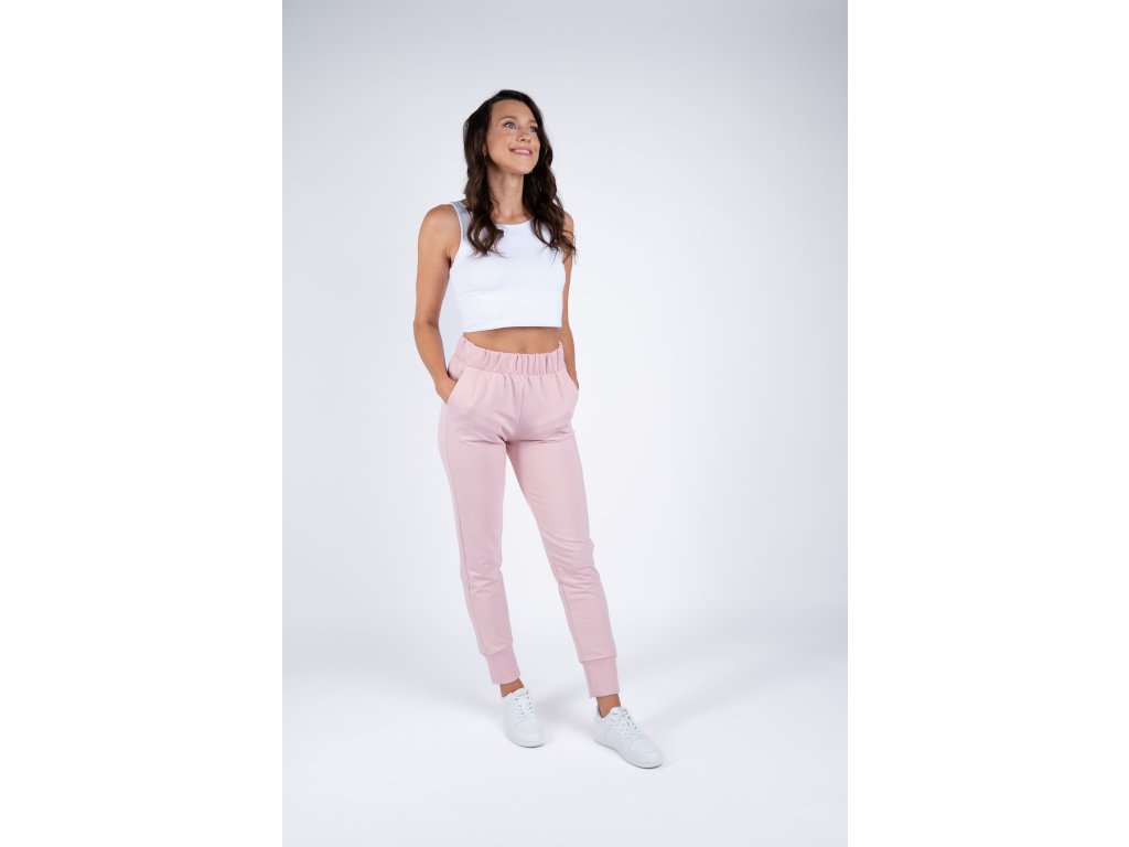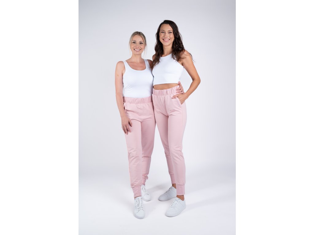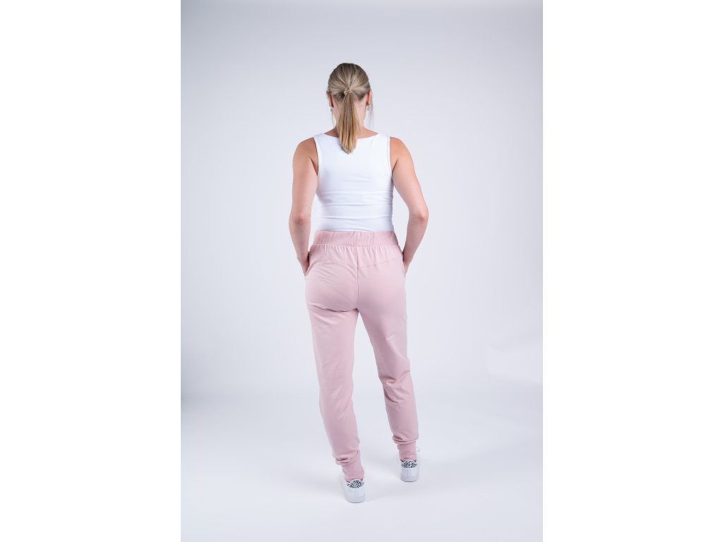 Pudrově růžové tepláky jsou velmi elastické, takže se perfektně přizpůsobí vaší postavě a jsou tak pohodlné, že je nebudete chtít už nikdy sundat.