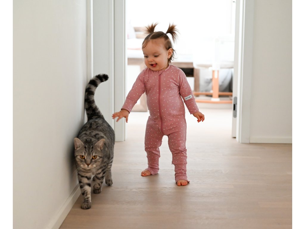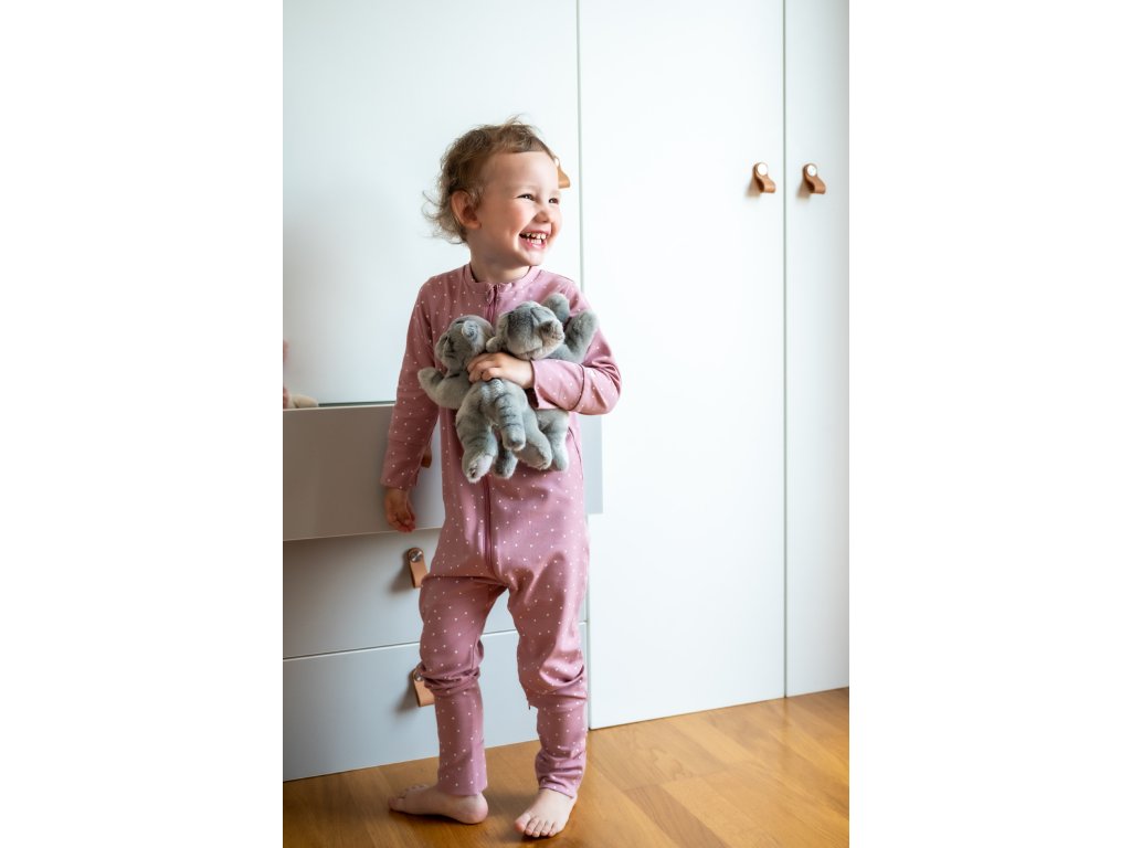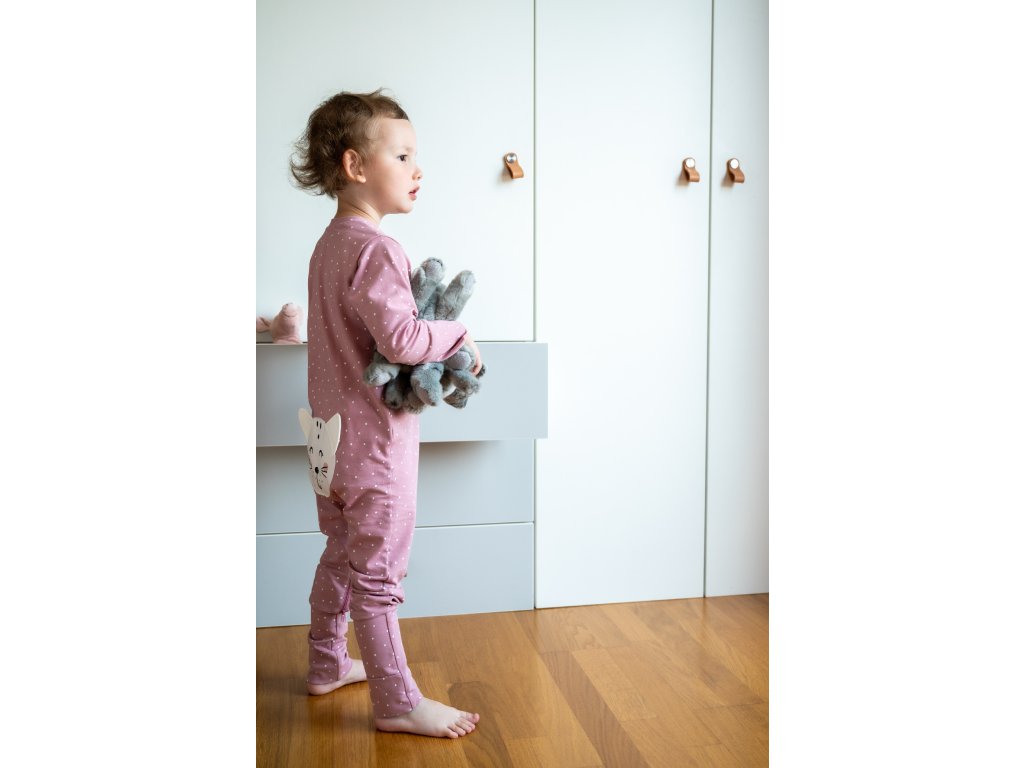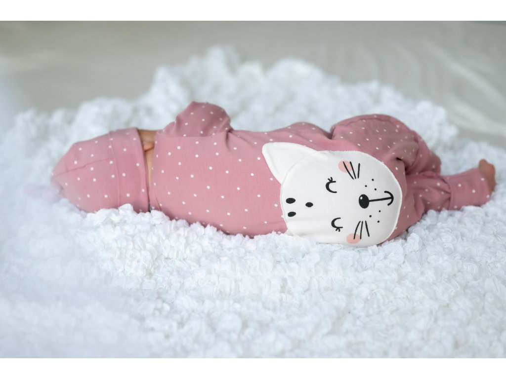 Rostoucí dětský overal na zip Moniel Overal Kočka Dots růžová je inovativní a jedinečný produkt svého druhu. Overal se dokonale přizpůsobí vašemu děťátku po celý rok.