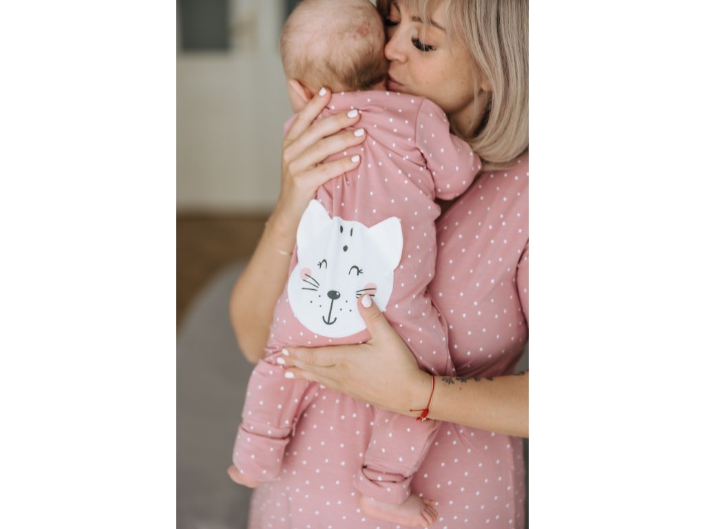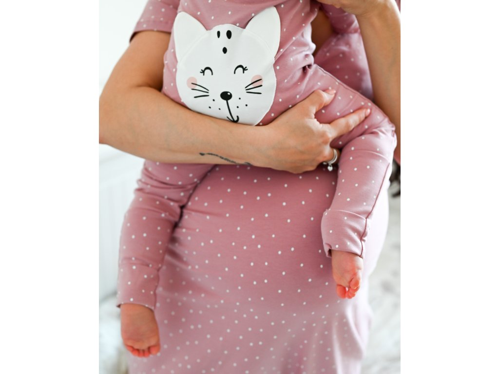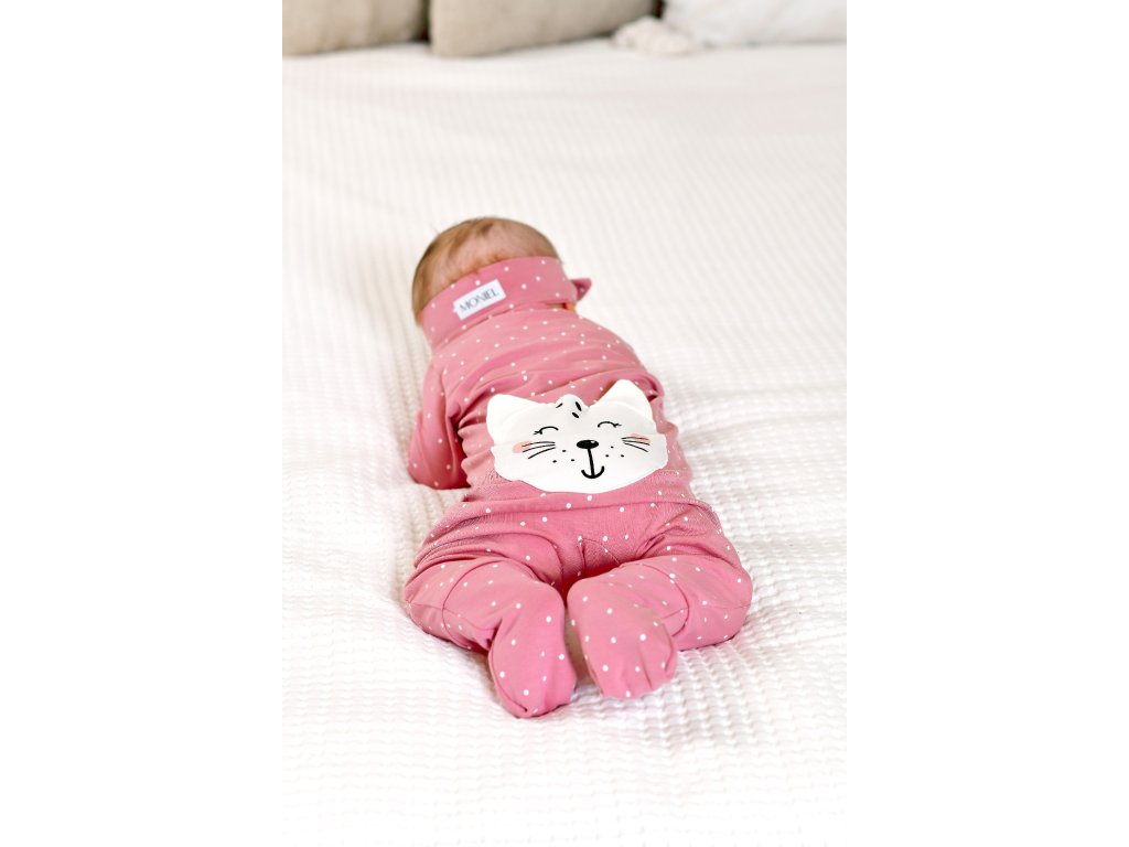 Moniel Dětský rostoucí overal Kočka Dots růžová