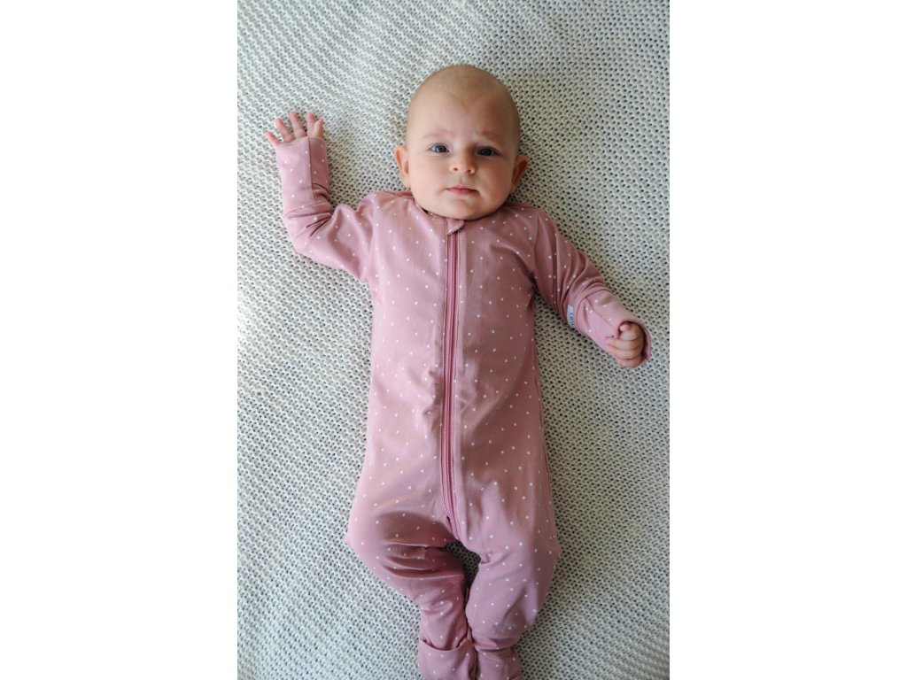 Má oboustranný zip, který umožňuje nejen snadné převlékání bez nutnosti zapínání patentků, ale také velmi rychlé přebalování kdykoli bude potřeba. Zip je zakončený až na nohavici, takže miminko přebalíte pohodlně a jednoduše kdykoli během noci.