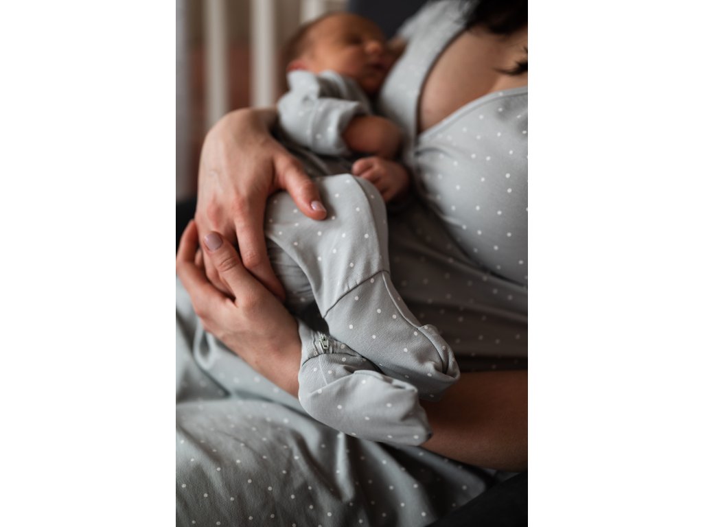 Má oboustranný zip, který umožňuje nejen snadné převlékání bez nutnosti zapínání patentků, ale také velmi rychlé přebalování kdykoli bude potřeba. Zip je zakončený až na nohavici, takže miminko přebalíte pohodlně a jednoduše kdykoli během noci.