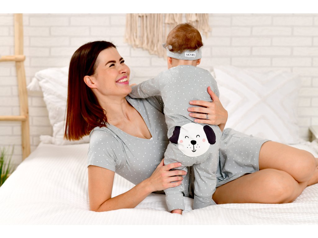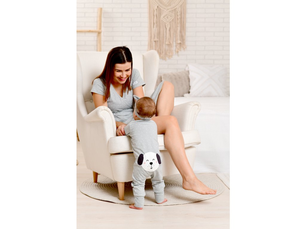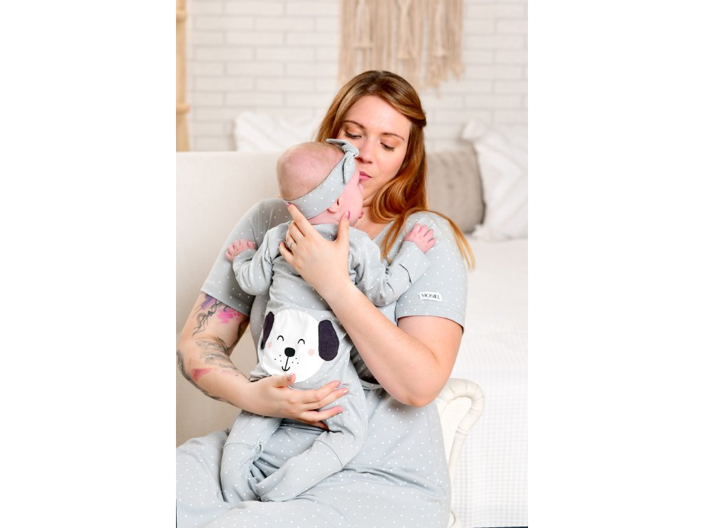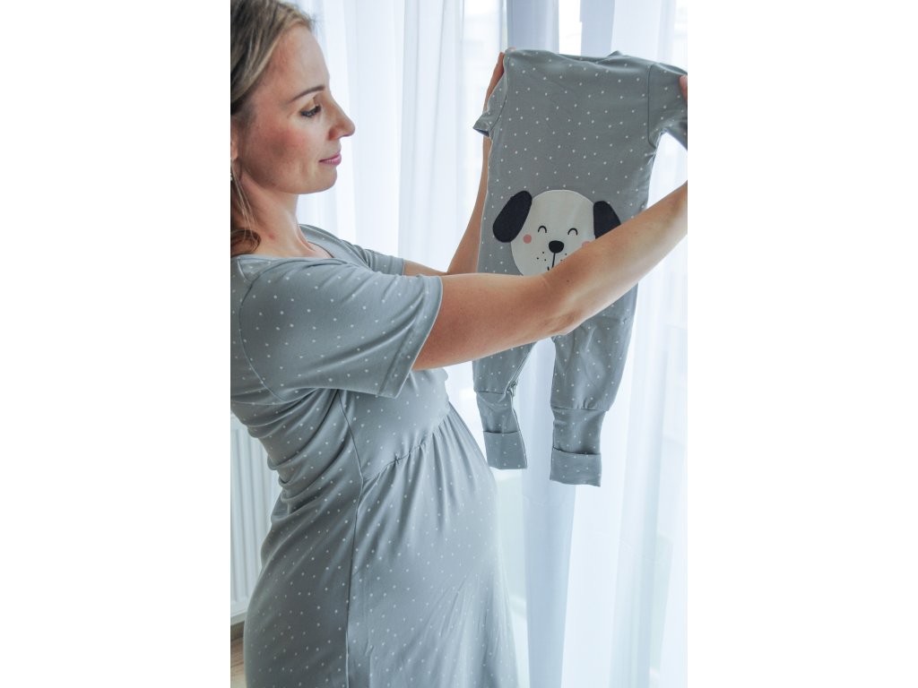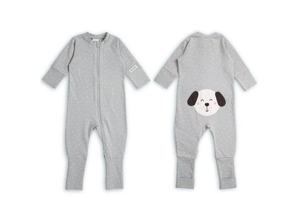 Moniel Dětský rostoucí overal Pes Dots šedá