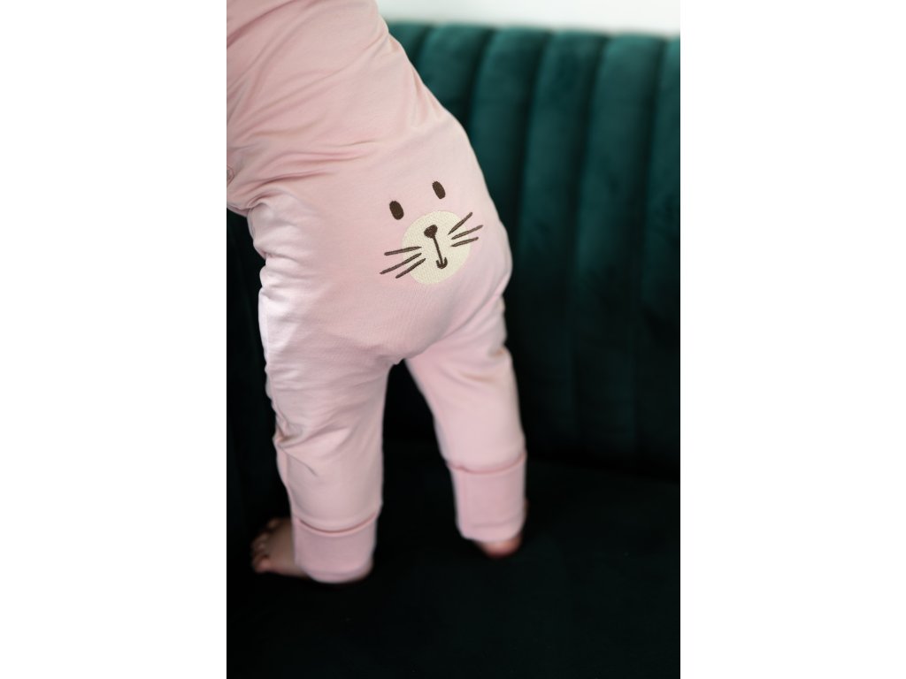 Moniel Dětský rostoucí teplákový overal Kočka Basic Powder Pink