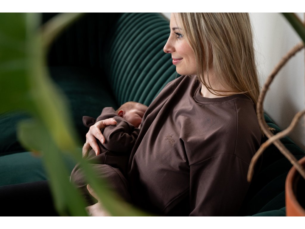 Dámská kojící dlouhá mikina Basic Chocolate má unikátní střih, který umožní decentní kojení kdykoli bude miminko potřebovat. Na první pohled však není poznat, že se jedná o kojící mikinu!