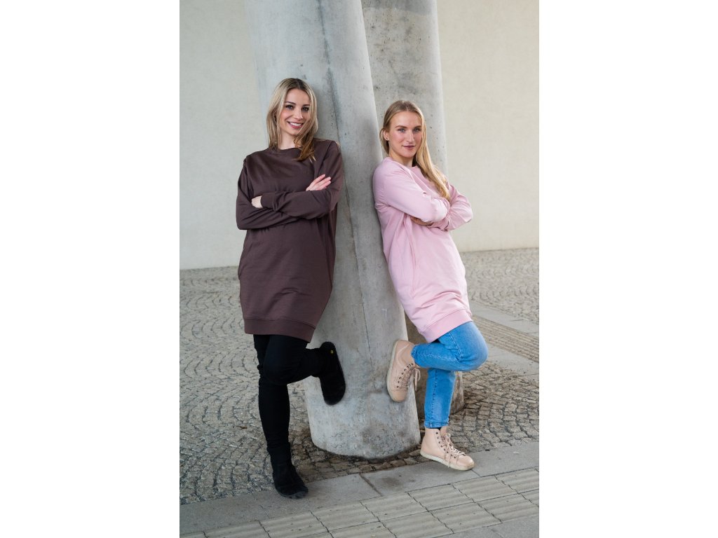 Dámská kojící dlouhá mikina Basic Powder Pink má unikátní střih, který umožní decentní kojení kdykoli bude miminko potřebovat. Na první pohled však není poznat, že se jedná o kojící mikinu!