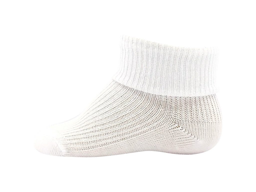 Slabé bavlněné ponožky z žebrovaného úpletu s podílem elastanu jsou příjemné na pokožce ale zároveň jsou pružné a dobře si drží tvar. Bavlna je přírodní materiál, citlivý k pokožce, dobře pohlcuje vlhkost. Jednobarevné ponožky lze nosit ozdobně ohrnuté nebo úplně natažené. Protože jsou ponožky vyšší, miminku nebudou klouzat z nožičky dolů. Nabízíme ve výhodné sadě 2 párů, bílá v kombinaci s modrou pro kluky nebo růžovou pro holky.