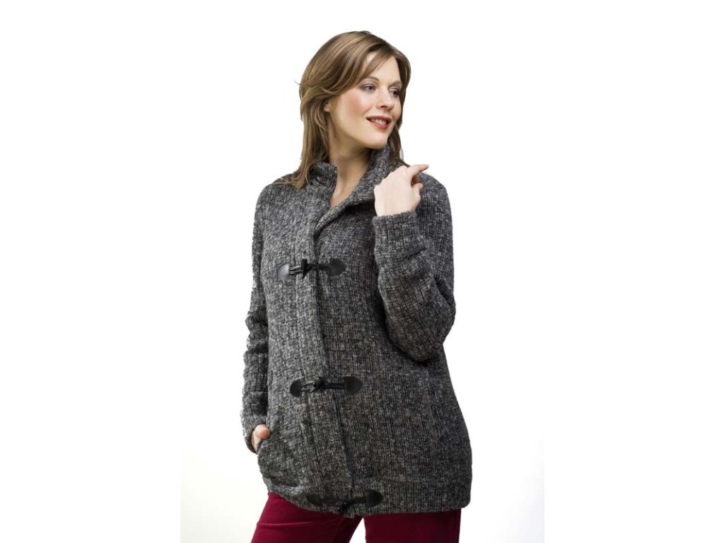 Hřejivý těhotenský svetr s výrazným zapínáním. S vyšším stojáčkem a do švů včleněnými kapsami na předním dílu. Délka svetru i rukávů je zakončena širší manžetou. Velmi dobře ho využijete i po těhotenství.